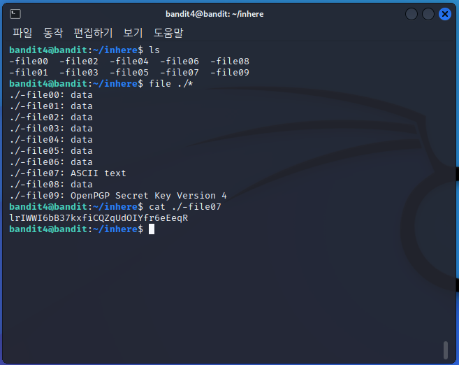 bandit4의 PW : 2EW7BBsr6aMMoJ2HjW067dm8EgX26xNe
